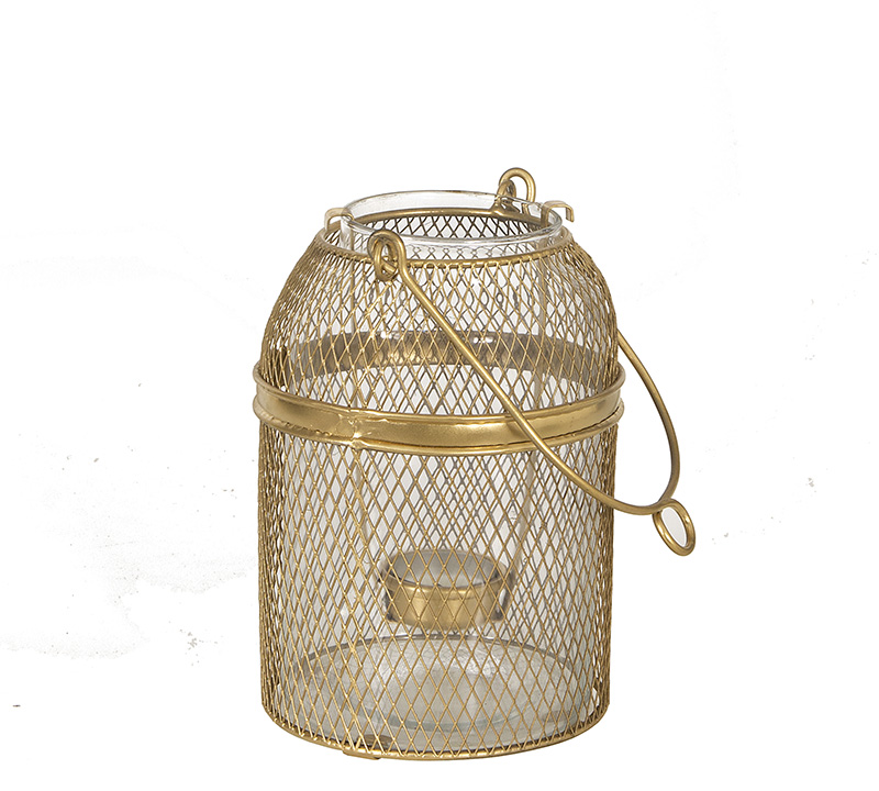 Γυάλινο φανάρι με μεταλλικό πλέγμα λευκό 18,5cm