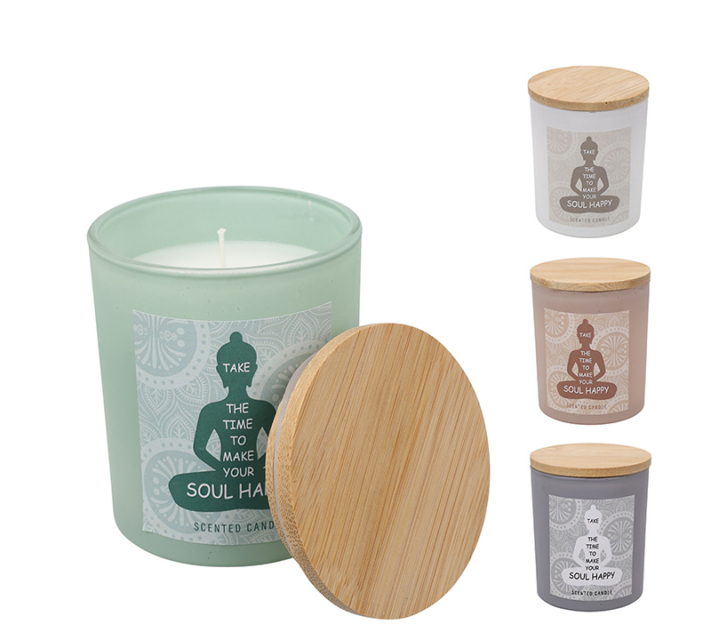 Αρωματικό κερί σε γυάλινο βάζο με καπάκι bamboo 4 αρώματα 8.5cm
