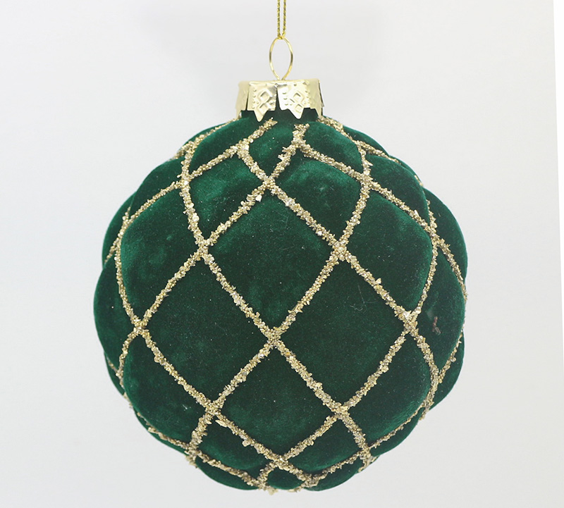 Γυάλινη μπάλλα σχ.ρομβοι σε πράσινο βελούδο 10cm