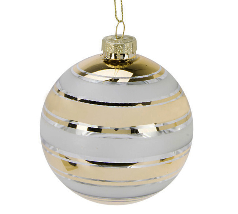 Γυάλινη μπάλλα χρυσή με λευκη ρίγα 10cm