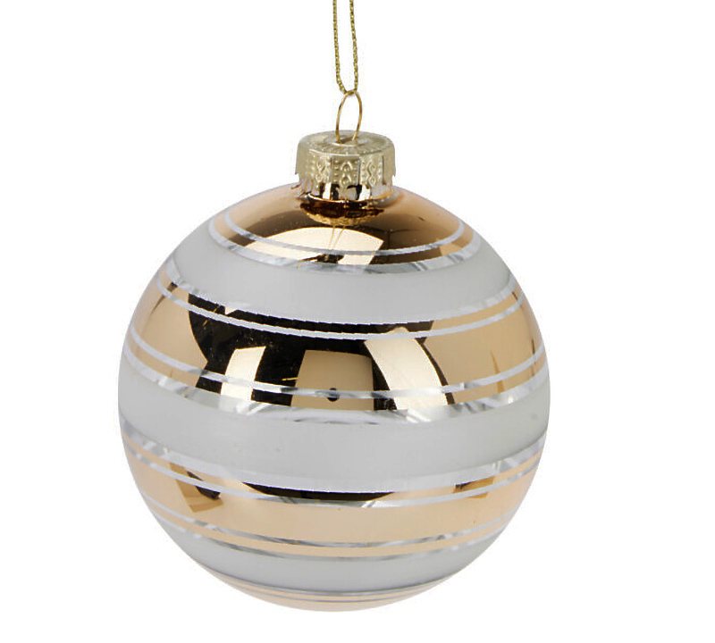 Γυάλινη μπάλλα χρυσή με λευκη ρίγα 8cm