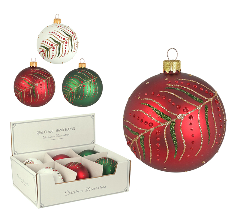 Γυάλινη χειροποίητη μπάλλα σχ.φύλλα πολύχρωμη 10cm