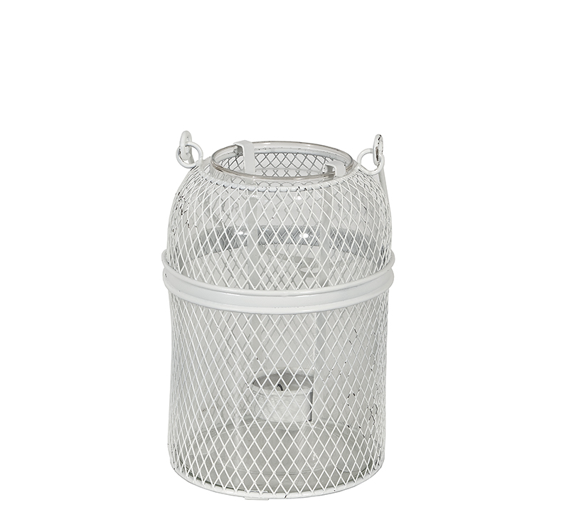 Γυάλινο φανάρι με μεταλλικό πλέγμα λευκό 18,5cm