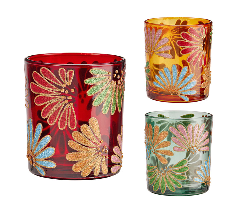 Γυάλινο φανάρι “Flower” σε 3 χρωμ.,9x10cm