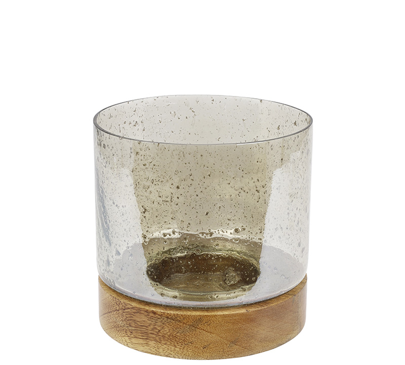 Γυαλινο φαναρι σε ξυλινη βαση mango δ.7χ17cm