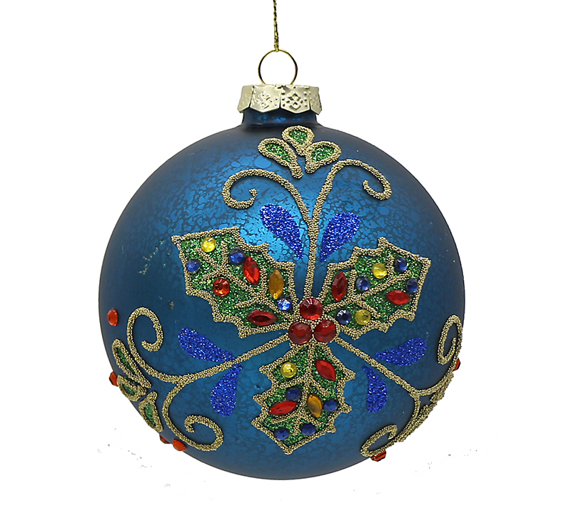 Γυαλ.μπάλλα μπλε με πολυχρ.φυλλα γκυ 8cm