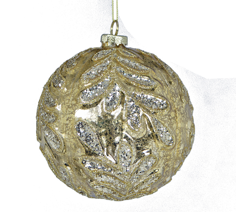 Γυαλ.μπάλλα σχ.φύλλα χρυσό / ασημί 12cm