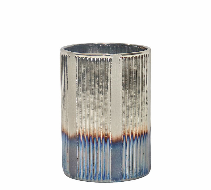 Κηροπήγιο,γυαλί “Nickel” ασημί/μπλε 9x13cm