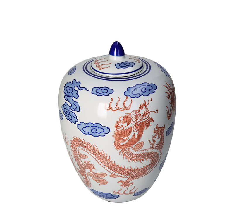Κινέζικο βάζο με καπάκι σχ.δράκος κοραλί/μπλε,27.5cm