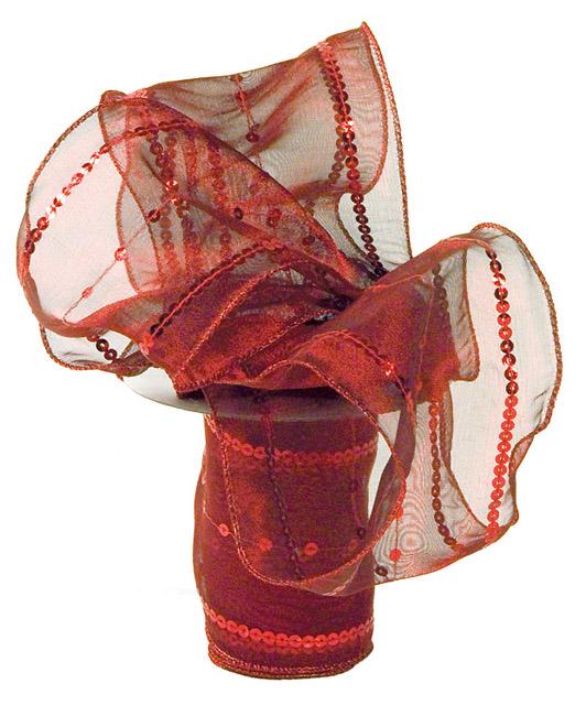 Κορδέλα Οργάνζα με παγιέτες κόκκινη 10cm