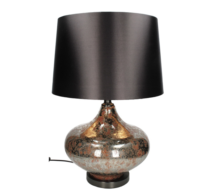 Λάμπα μαύρο καπέλο & γυάλινη vintage ασημί βάση 64cm
