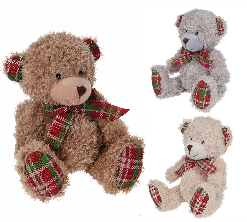 Λούτρινο αρκουδάκι με καρώ λεπτομέρειες,3χρ.18cm
