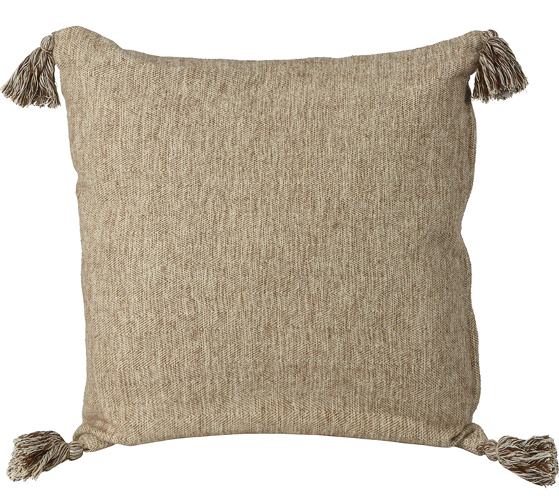 Μαξιλάρι cotton σχ.ψαροκόκκαλο,, φουντίτσες καφέ,45cm