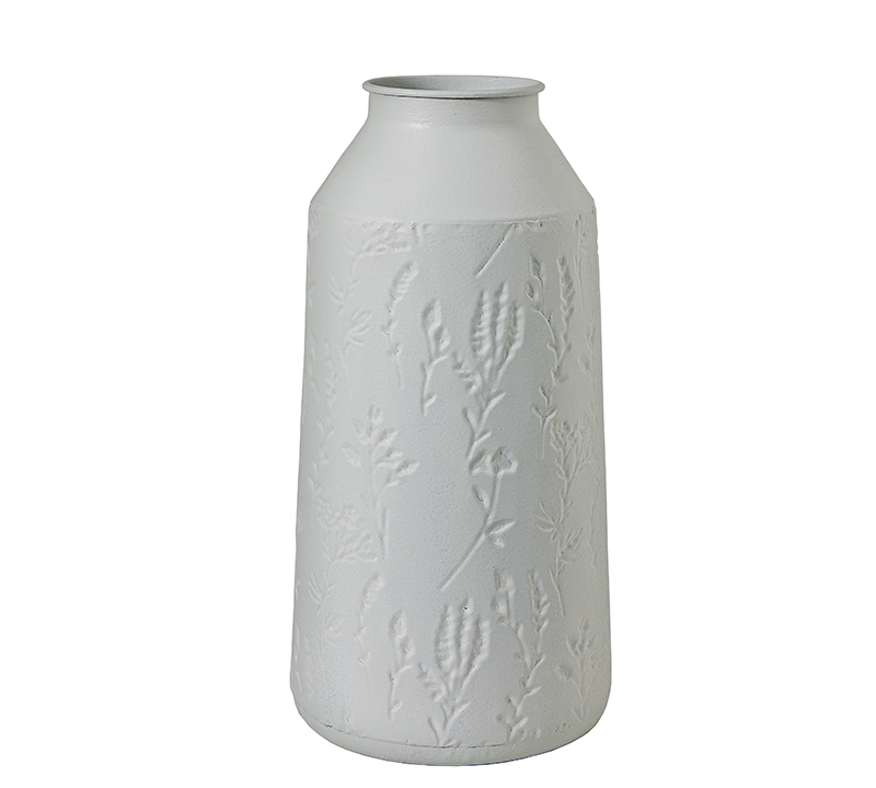 Μεταλλικό βάζο με ανάγλυφο λουλούδι λευκό 39cm