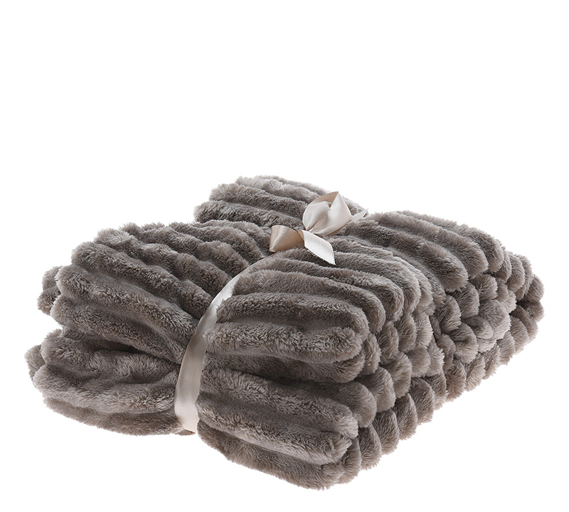 Ριχτάρι συνθετική γούνα φαρδυά ρίγα, γκρι 130x150cm