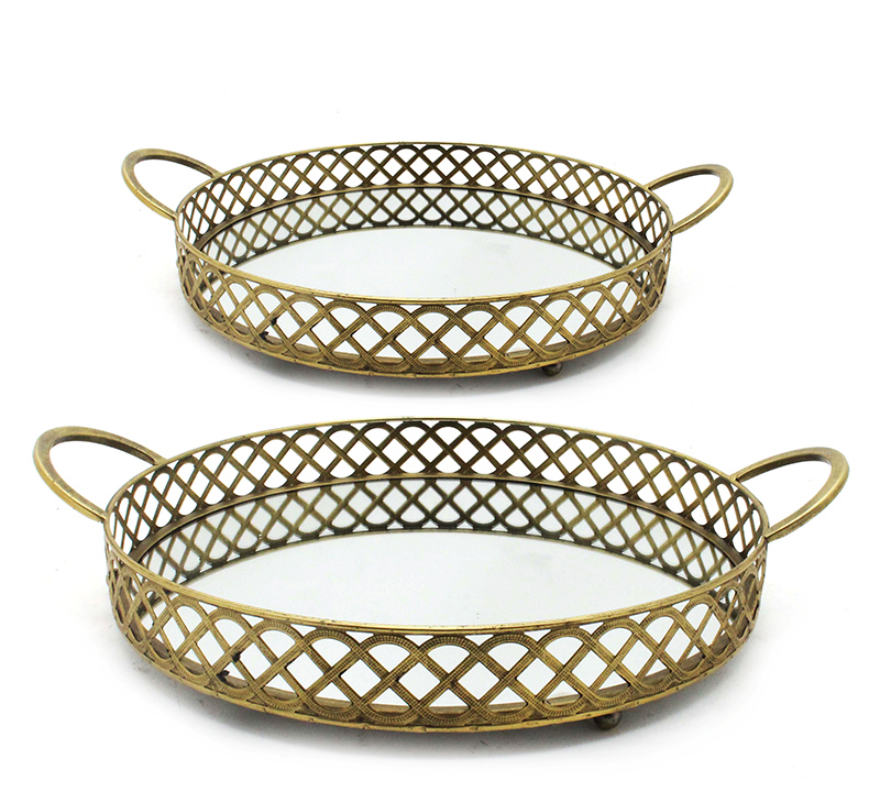 Σετ/2 στρογγυλοί δίσκοι με καθρέπτη, Δ/45/50cm