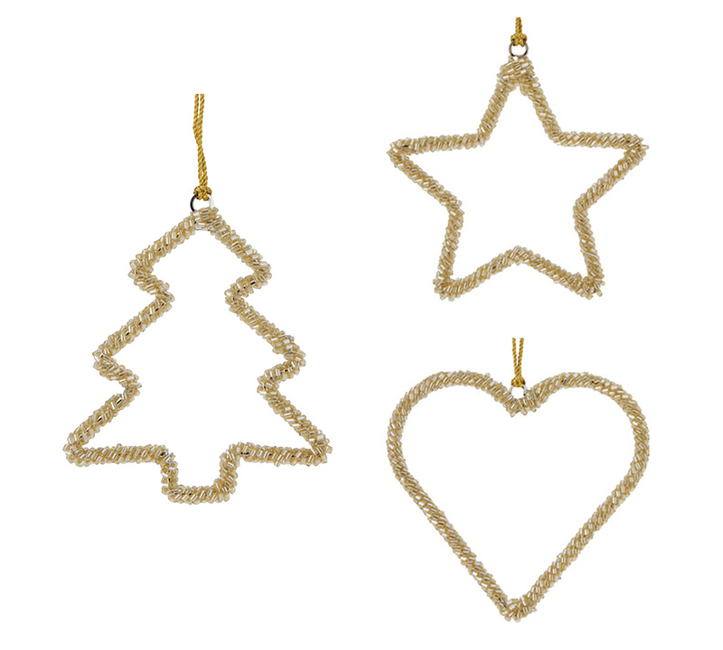 Στολίδια με γυάλ. χάντρες χρυσές, 3σχδ.,10cm