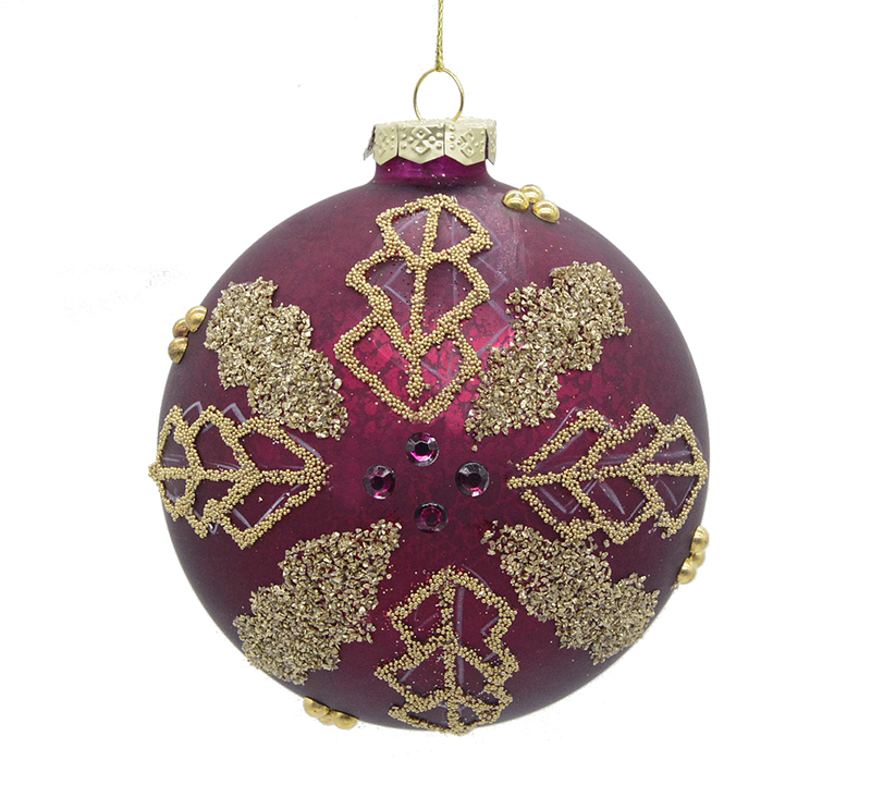 Glass Ball Burgundy & Gold Leafs,D.:10cm