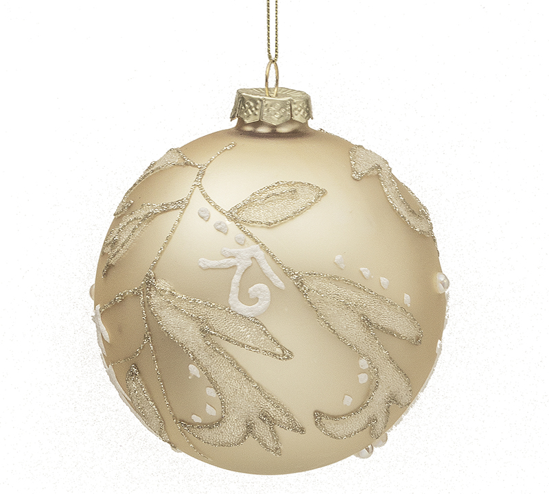 Glass Ball Champaign W/Leaf,D.10cm