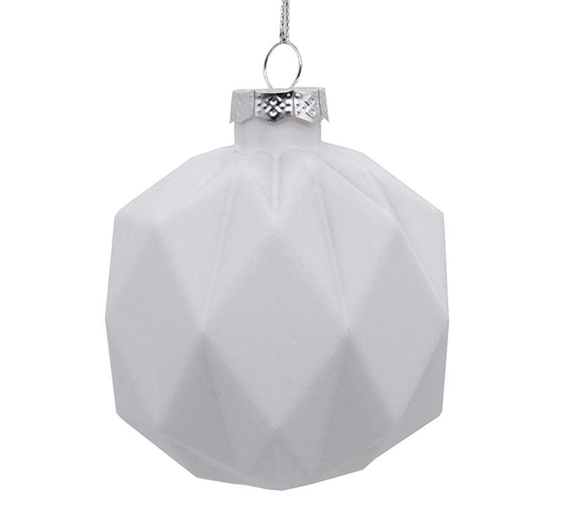 Glass Ball Geometric Des. White,D.:10cm