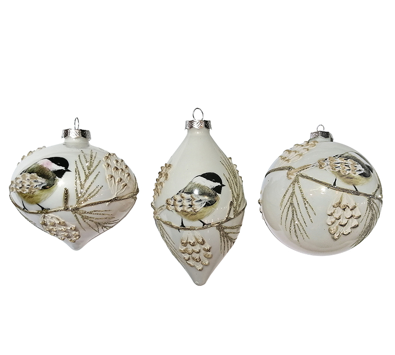 Glass Ornament 3 Style, Birds Design Cream Clr