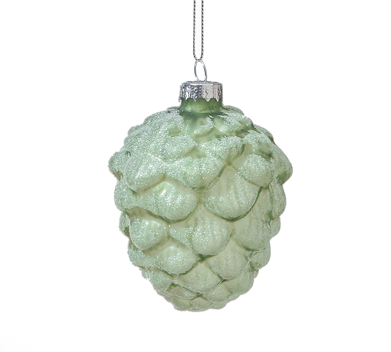 Glass Pinecone Orn Slate Green W/Ice Glitter,9X7cm